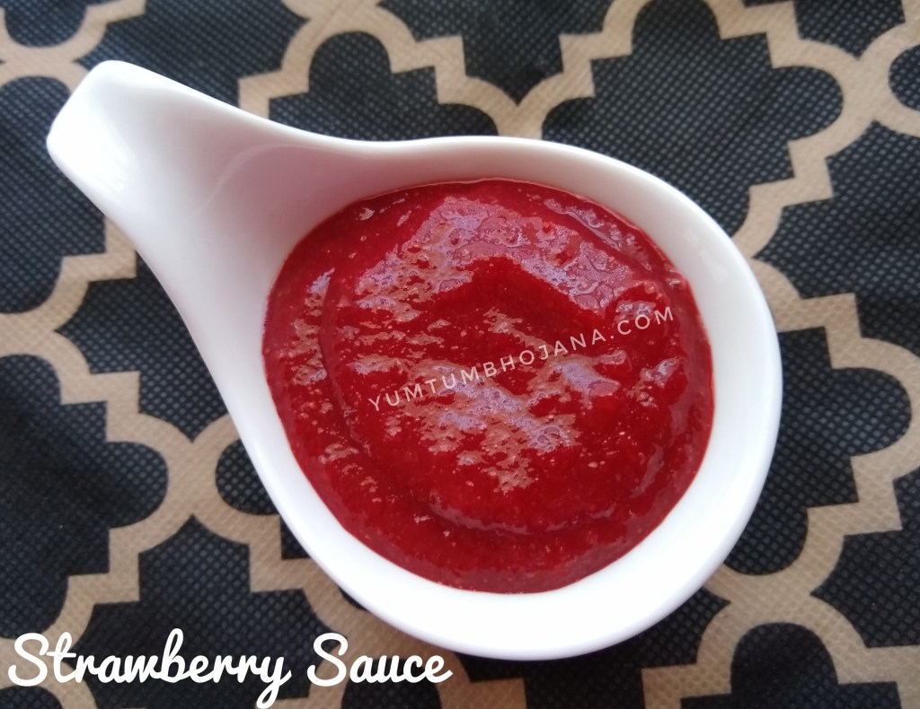 Strawberry sauce is a tangy and sweet sauce. This can be used in dessert, ice-creams or can be served as a dip for kids as an alternative to tomato sauce. This recipe is adapted from a very famous tv show called Samayal Samayal. I hope you enjoy making this. Let us get into the detailed recipe.