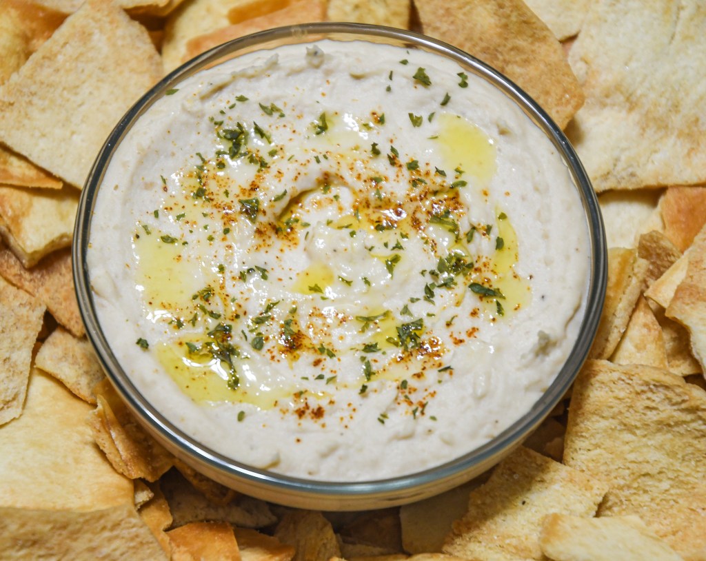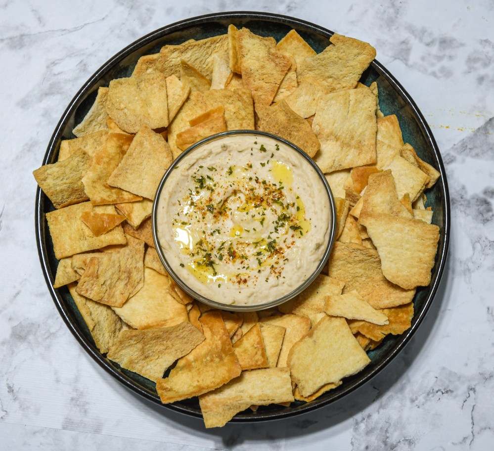 Traditionally this recipe is made using chickpea, tahini, salt, olive oil, garlic, and lemon juice. This dish can be eaten as a dip with pita chips or as an addition to a Mediterranean Buddha bowl. This may also be used as a spread on toast or as a dip with raw veggies and falafel.